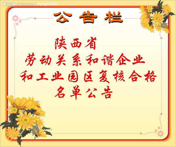 為深入貫徹落實(shí)省委、省政府《關(guān)于構(gòu)建和諧勞動(dòng)關(guān)系實(shí)施意見(jiàn)》,根據(jù)陜西省勞動(dòng)關(guān)系和諧企業(yè)和工業(yè)園區(qū)創(chuàng)建標(biāo)準(zhǔn),省市人社部門、總工會(huì)、企業(yè)家協(xié)會(huì)、企業(yè)聯(lián)合會(huì)、工商業(yè)聯(lián)合會(huì),對(duì)我省開(kāi)展創(chuàng)建活動(dòng)以來(lái)評(píng)選的178戶陜西省勞動(dòng)關(guān)系和諧企業(yè)和5家工業(yè)園區(qū)進(jìn)行了復(fù)核,有163戶企業(yè)、4家工業(yè)園區(qū)符合創(chuàng)建標(biāo)準(zhǔn),繼續(xù)保留其榮譽(yù),現(xiàn)予以公告(排名不分先后)。希望保留榮譽(yù)的企業(yè)、工業(yè)園區(qū)再接再厲,發(fā)揮示范引領(lǐng)作用。全省各類企業(yè)和工業(yè)園區(qū)要學(xué)習(xí)他們的先進(jìn)經(jīng)驗(yàn),提升創(chuàng)建水平,積極構(gòu)建和諧穩(wěn)定的勞動(dòng)關(guān)系。