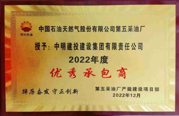 3月1日,中國石油天然氣股份有限公司第五采油廠召開了第五采油廠產能建設項目組地面建設專題啟動會,經第五采油廠產能建設項目部考核評定,中明建投集團承建的第五采油廠化驗樓項目獲評“2022年度優(yōu)秀承包商”榮譽稱號! 第五采油廠項目自2022年6月中旬正式開工建設,項目部在施工前進行了詳細勘察,制定了周密的施工方案,在施工中克服了種種不利因素,項目部全體人員齊心協(xié)力、攻堅克難,充分發(fā)揮集團“建精品工程 創(chuàng)優(yōu)質品牌”的宗旨,認真落實各項管理措施,使施工現(xiàn)場管理規(guī)范,質量安全把控良好,最終安全、優(yōu)質、圓滿的完成了施工任務,得到了甲方的廣泛認可。 此次榮獲“2022年優(yōu)秀承包商”稱號,既是甲方對第五采油廠項目部出色工作的肯定,也是對集團在項目管理成效的肯定和鞭策,我們將以此為動力,繼續(xù)擔當作為,履職盡責,強化風險意識,狠抓項目管理,為打造行業(yè)標桿繼續(xù)努力奮進!
