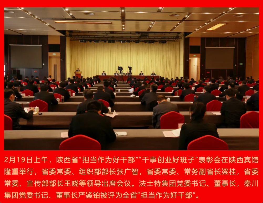 作為國(guó)有企業(yè)領(lǐng)導(dǎo)干部,嚴(yán)鑒鉑始終堅(jiān)持以習(xí)近平新時(shí)代中國(guó)特色社會(huì)主義思想為指導(dǎo),履職盡責(zé)、擔(dān)當(dāng)作為、真抓實(shí)干,以實(shí)際行動(dòng)踐行著“對(duì)黨忠誠(chéng)、勇于創(chuàng)新、治企有方、興企有為、清正廉潔”的20字要求。在他胸懷產(chǎn)業(yè)報(bào)國(guó)的宏偉理想和赤誠(chéng)之心的帶領(lǐng)下,法士特集團(tuán)持續(xù)高質(zhì)量發(fā)展,秦川集團(tuán)實(shí)現(xiàn)了產(chǎn)業(yè)升級(jí)與企業(yè)發(fā)展戰(zhàn)略協(xié)同、不斷迭進(jìn),共同掀開了深度戰(zhàn)略協(xié)同發(fā)展的新篇章。 此次大會(huì)共表彰了“擔(dān)當(dāng)作為好干部”88名,“干事創(chuàng)業(yè)好班子”34個(gè)。