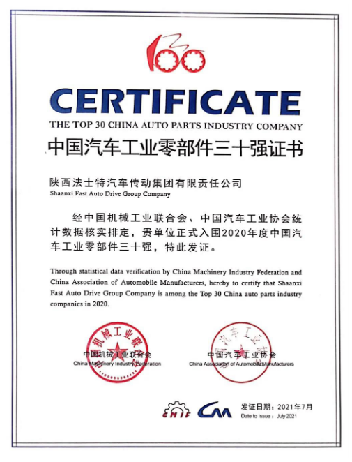 7月28日,第十七屆“中國機械工業(yè)百強、汽車工業(yè)整車二十強、零部件三十強企業(yè)信息發(fā)布會”在四川德陽召開。法士特以良好的生產(chǎn)經(jīng)營業(yè)績,榮登2020年度“中國汽車工業(yè)零部件三十強”,名列第10位,較去年再進一名,成為陜西省唯一入圍企業(yè)。 2020年,法士特克服新冠肺炎疫情和國內(nèi)外經(jīng)濟環(huán)境影響,全員創(chuàng)新、克難、聚力、爭先,產(chǎn)銷再創(chuàng)歷史新紀錄。全年累計銷售變速器總成118萬臺,累計產(chǎn)銷雙超千萬臺,成為中國重型變速器行業(yè)發(fā)展一大創(chuàng)舉,各項經(jīng)營指標持續(xù)領跑行業(yè)。 本次發(fā)布會以“肩負振興使命,引領行業(yè)發(fā)展”為主題,由中國機械工業(yè)聯(lián)合會、中國汽車工業(yè)協(xié)會主辦,旨在進一步發(fā)揮行業(yè)骨干企業(yè)示范引領作用,推動產(chǎn)業(yè)轉(zhuǎn)型升級,培育新動能,推動行業(yè)高質(zhì)量發(fā)展。