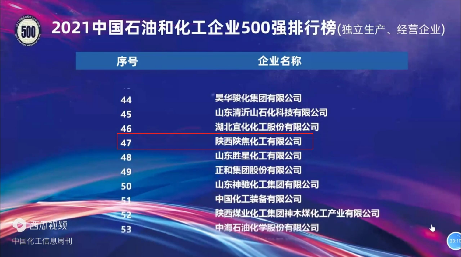 11月29日,在大連舉行的2021中國石油和化工企業(yè)500強發(fā)布會暨雙循環(huán)新格局下石油化工大企業(yè)的機遇與挑戰(zhàn)高峰論壇上,發(fā)布了2021中國石油和化工企業(yè)500強及分行業(yè)排行榜,陜焦公司位列獨立生產(chǎn)、經(jīng)營企業(yè)第47位,較2020年位次前移20位。 2020年,陜焦公司經(jīng)歷了環(huán)保趨緊的嚴(yán)峻考驗,體會了潮起潮落的市場冷暖,頂住了經(jīng)濟下滑的巨大壓力,于市場的逆流中自救求生、攻堅求贏,于國企的改革中砥兵礪伍、奮力拼搏,以“咬定青山不放松”的韌勁和“不破樓蘭終不還”的拼勁,用智慧和汗水書寫著陜焦高質(zhì)量發(fā)展的答卷,在生產(chǎn)經(jīng)營、安全環(huán)保、科技創(chuàng)新、產(chǎn)能釋放、多元發(fā)展、黨建民生等方面均取得了驕人的業(yè)績。全年實現(xiàn)營業(yè)收入133.41億元,利潤3.68億元,公司資產(chǎn)總額達到107.08億元,歷史性突破“百億”關(guān)口,企業(yè)綜合競爭力進一步增強,呈現(xiàn)出更加自信、更有影響、更具活力的新面貌。 乘勢而上千帆競,策馬揚鞭正當(dāng)時。2021年以來,陜焦公司深入貫徹“雙控”“雙碳”政策要求,堅持“穩(wěn)中求進、創(chuàng)新改革、轉(zhuǎn)型升級、精細管理”主基調(diào),緊扣“焦炭做精、化工做優(yōu)、貿(mào)易做大、企業(yè)做強”發(fā)展戰(zhàn)略,以“11255”高質(zhì)量目標(biāo)為抓手,內(nèi)挖潛力強管理,外拓市場擴貿(mào)易,企業(yè)發(fā)展動力不斷增強,1-10月份,陜焦公司實現(xiàn)營業(yè)收入172.03億元,利潤 14.22億元,刷新歷史紀(jì)錄。
