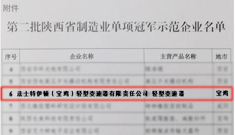近日,陜西省工業(yè)和信息化廳印發(fā)文件,授予法士特伊頓(寶雞)輕型變速器有限責(zé)任公司第二批陜西省“制造業(yè)單項(xiàng)冠軍示范企業(yè)”稱號。 近年來,法士特伊頓(寶雞)公司以高質(zhì)量發(fā)展為主線,堅(jiān)持技術(shù)創(chuàng)新、產(chǎn)品升級,不斷引領(lǐng)輕型商用車變速器行業(yè)發(fā)展。變速器產(chǎn)品采用全斜齒、磨齒工藝,全鋁合金輕量化設(shè)計(jì),控制系統(tǒng)軟硬件完全自主開發(fā),換擋策略成熟,具有噪音低、質(zhì)量輕、傳動(dòng)效率高、燃油經(jīng)濟(jì)性好等多種優(yōu)勢。 據(jù)悉,此次項(xiàng)目的設(shè)立,旨在加快培育發(fā)展以制造業(yè)單項(xiàng)冠軍企業(yè)為代表的優(yōu)質(zhì)企業(yè),引導(dǎo)陜西省制造業(yè)企業(yè)走“專精特新”發(fā)展道路,促進(jìn)產(chǎn)業(yè)基礎(chǔ)高級化、產(chǎn)業(yè)鏈現(xiàn)代化,提升陜西省制造業(yè)整體競爭力。